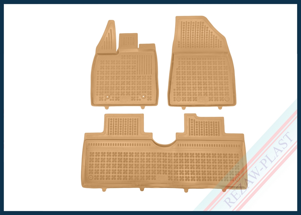 Komplet przeznaczony do pierwszego i drugiego rzędu siedzeń. Składa się z 3 sztuk i zawiera stopery do przednich dywaników. Można zakupić dodatkowo komplet stoperów do tylnych dywaników. Dywaniki dostępne również w innych kolorach: szary i czarny.