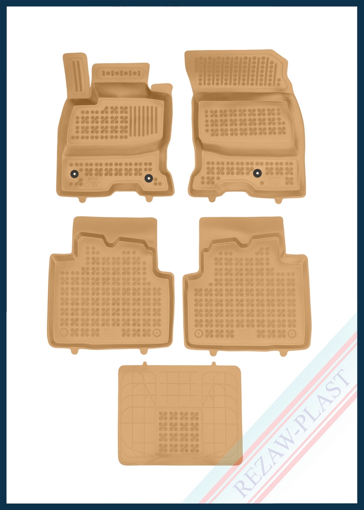 Komplet przeznaczony do pierwszego i drugiego rzędu siedzeń. Składa się z 4 sztuk + dodatkowy dywanik na tylny tunel, zawiera stopery do przednich dywaników. Można zakupić dodatkowo komplet stoperów do tylnych dywaników. Dywaniki dostępne również w innych kolorach: szary i czarny.