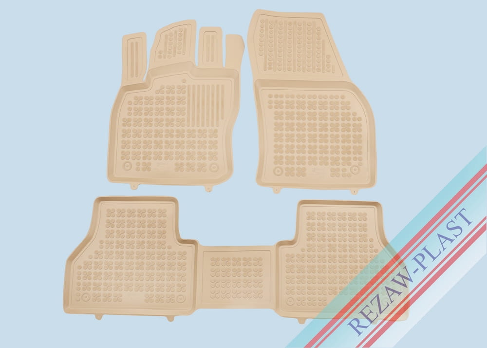 Komplet przeznaczony do pierwszego i drugiego rzędu siedzeń. Składa się z 3 sztuk i zawiera stopery do przednich dywaników. Można zakupić dodatkowo komplet stoperów do tylnych dywaników. Dywaniki dostępne również w innych kolorach: szary i czarny.