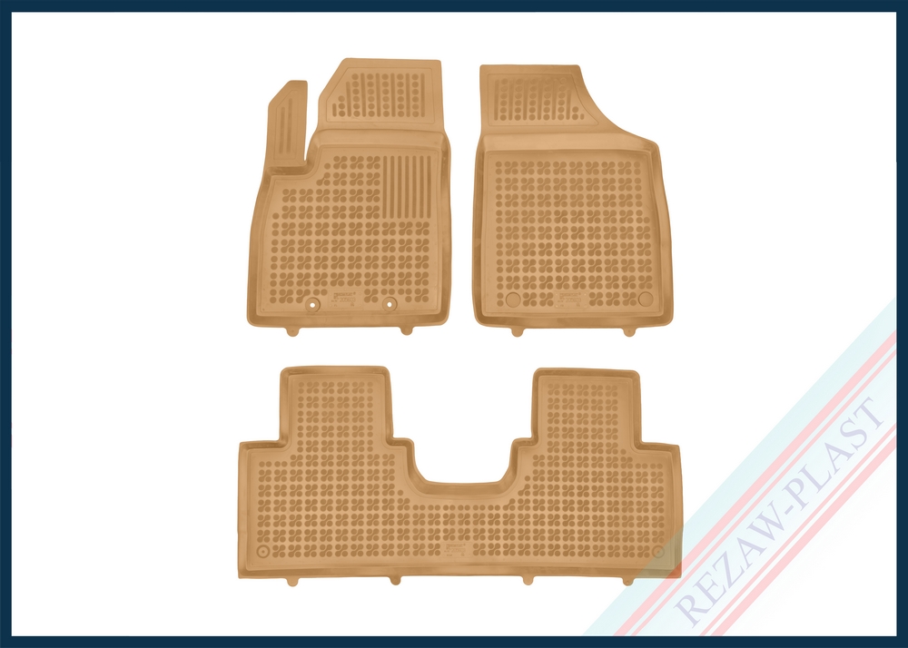 Komplet przeznaczony do pierwszego i drugiego rzędu siedzeń. Składa się z 3 sztuk i zawiera stopery do przednich dywaników. Można zakupić dodatkowo komplet stoperów do tylnych dywaników. Dywaniki dostępne również w innych kolorach: szary i czarny.