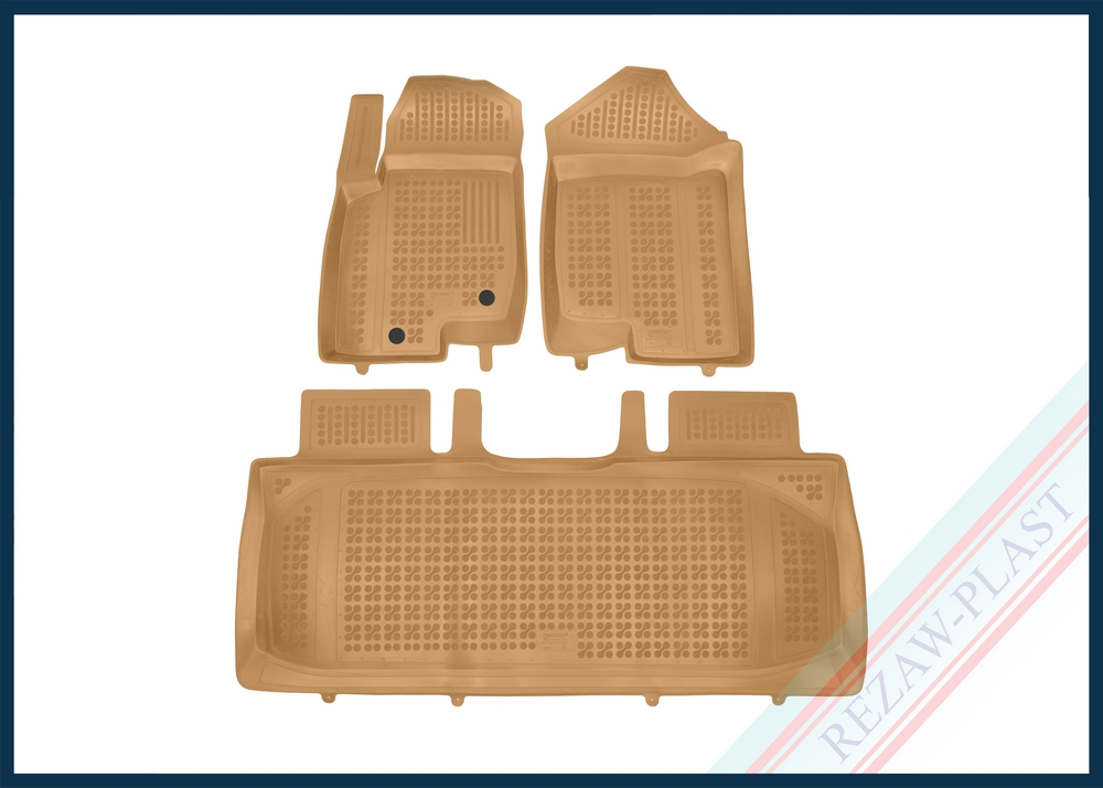 Komplet przeznaczony do pierwszego i drugiego rzędu siedzeń. Składa się z 3 sztuk i zawiera stopery do przednich dywaników. Można zakupić dodatkowo komplet stoperów do tylnych dywaników. Dywaniki dostępne również w innych kolorach: szary i czarny.