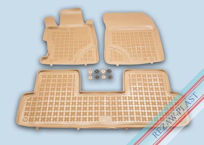 Komplet przeznaczony do pierwszego i drugiego rzędu siedzeń. Składa się z 3 sztuk i zawiera stopery do przednich dywaników. Można zakupić dodatkowo komplet stoperów do tylnych dywaników. Dywaniki dostępne również w innych kolorach: szary i czarny.