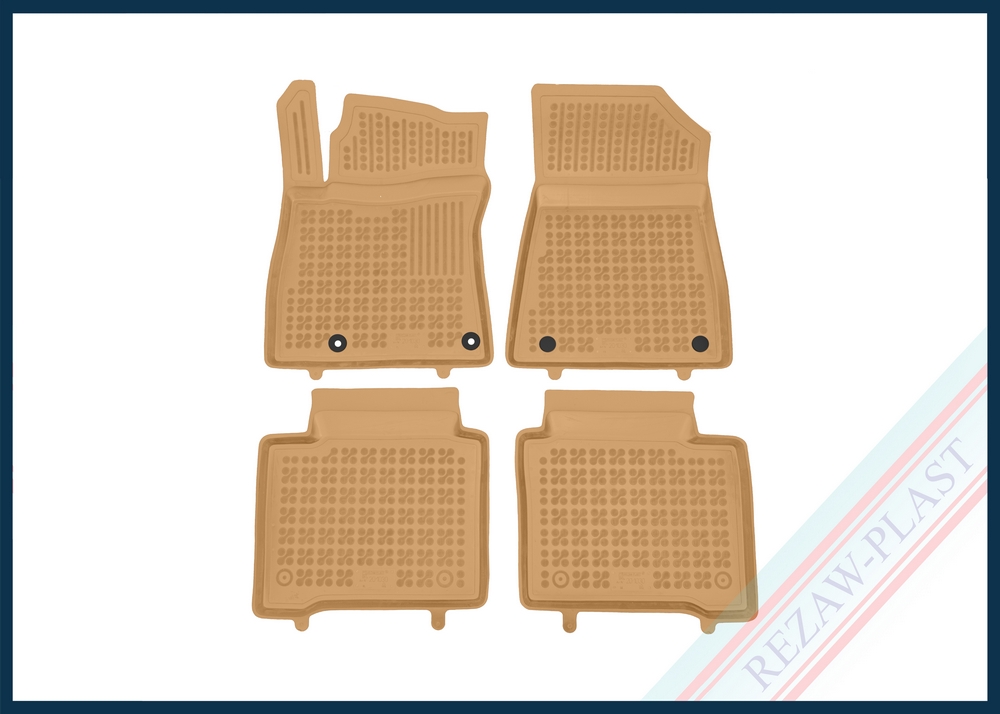 Komplet przeznaczony do pierwszego i drugiego rzędu siedzeń. Składa się z 4 sztuk i zawiera stopery do przednich dywaników. Można zakupić dodatkowo komplet stoperów do tylnych dywaników. Dywaniki dostępne również w innych kolorach: szary i czarny.