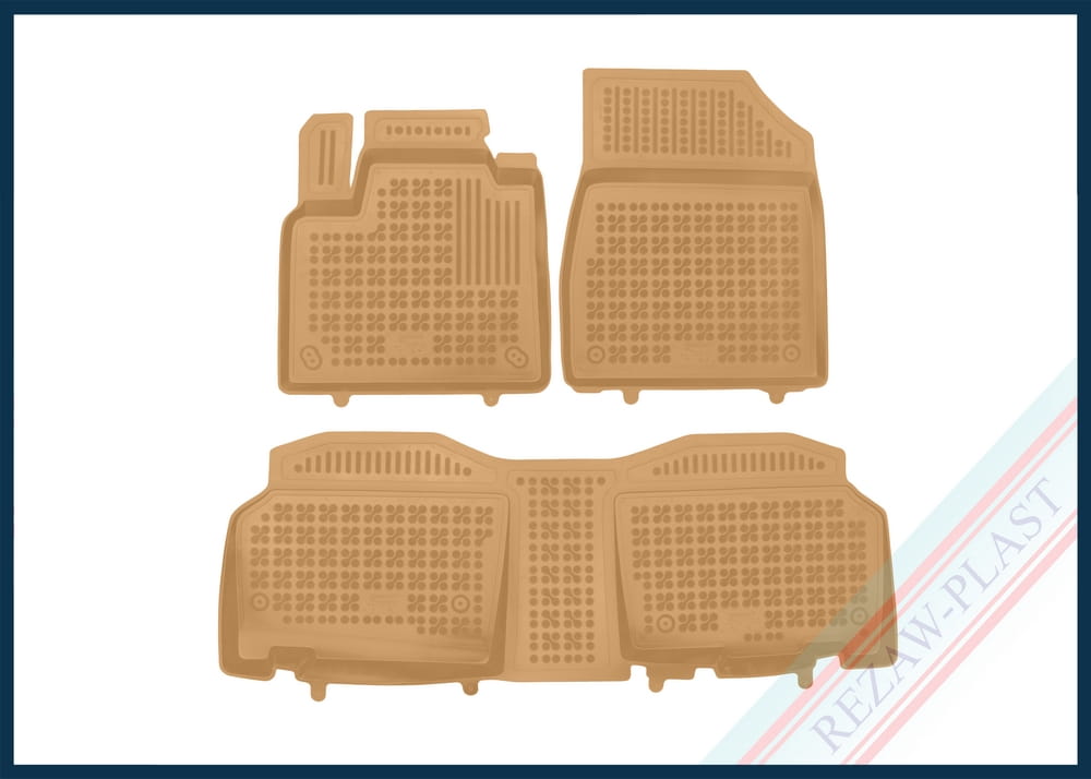 Komplet przeznaczony do pierwszego i drugiego rzędu siedzeń. Składa się z 3 sztuk i zawiera stopery do przednich dywaników. Można zakupić dodatkowo komplet stoperów do tylnych dywaników. Dywaniki dostępne również w innych kolorach: szary i czarny.