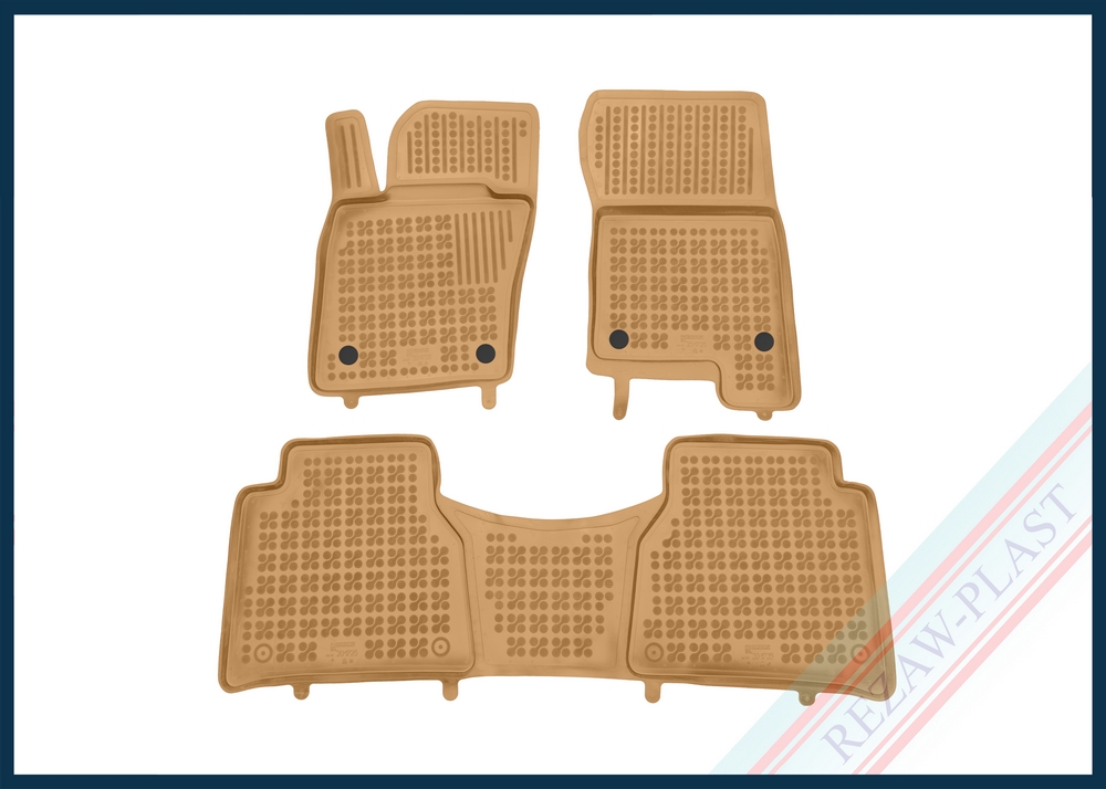 Komplet przeznaczony do pierwszego i drugiego rzędu siedzeń. Składa się z 3 sztuk i zawiera stopery do przednich dywaników. Można zakupić dodatkowo komplet stoperów do tylnych dywaników. Dywaniki dostępne również w innych kolorach: szary i czarny.