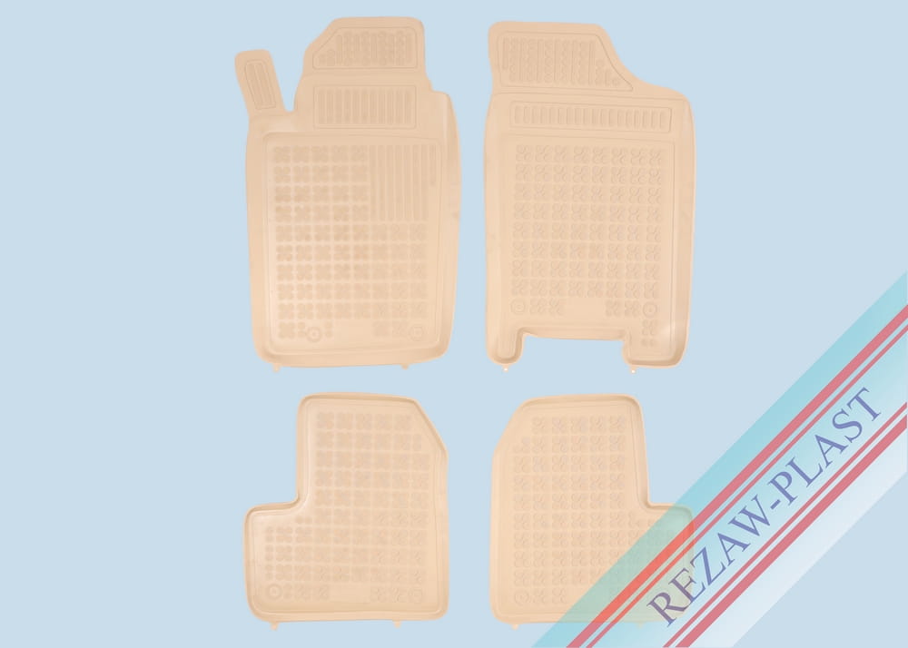 Komplet przeznaczony do pierwszego i drugiego rzędu siedzeń, Składa się z 4 sztuk i zawiera stopery do przednich dywaników, Można zakupić dodatkowo komplet stoperów do tylnych dywaników, Dywaniki dostępne również w innych kolorach: szary i czarny.