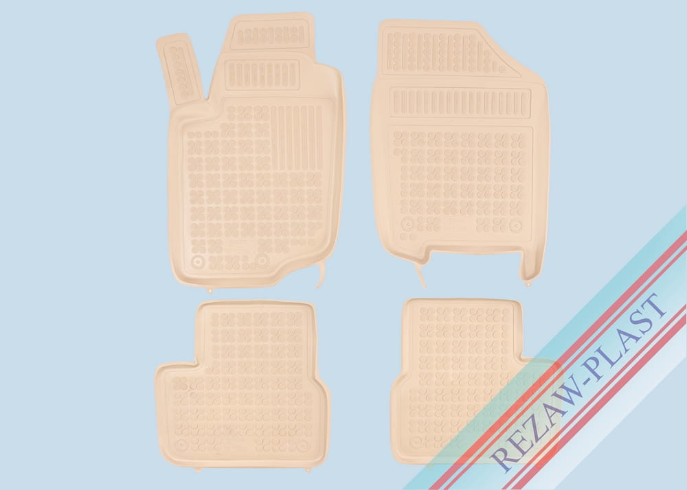 Komplet przeznaczony do pierwszego i drugiego rzędu siedzeń, Składa się z 4 sztuk i zawiera stopery do przednich dywaników, Można zakupić dodatkowo komplet stoperów do tylnych dywaników, Dywaniki dostępne również w innych kolorach: szary i czarny.