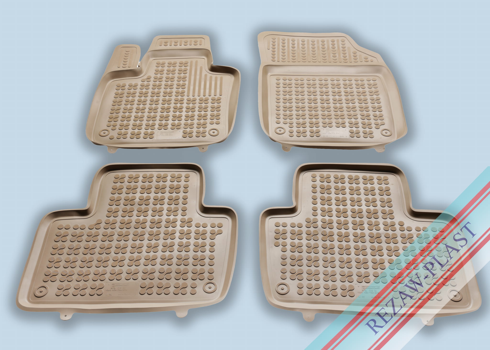Komplet przeznaczony do pierwszego i drugiego rzędu siedzeń. Składa się z 4 sztuk i zawiera stopery do przednich dywaników. Można zakupić dodatkowo komplet stoperów do tylnych dywaników. Dywaniki dostępne również w innych kolorach: szary i czarny.