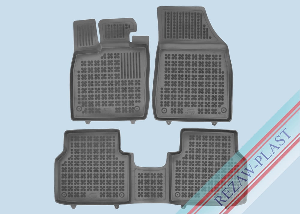 Komplet przeznaczony do pierwszego i drugiego rzędu siedzeń. Składa się z 3 sztuk i zawiera stopery do przednich dywaników. Można zakupić dodatkowo komplet stoperów do tylnych dywaników. Dywaniki dostępne również w innych kolorach: szary i beżowy.
