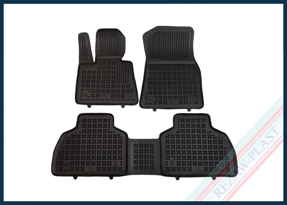 Komplet przeznaczony do pierwszego i drugiego rzędu siedzeń. Składa się z 3 sztuk i zawiera stopery do przednich dywaników. Można zakupić dodatkowo komplet stoperów do tylnych dywaników. Dywaniki dostępne również w innych kolorach: szary i beżowy.