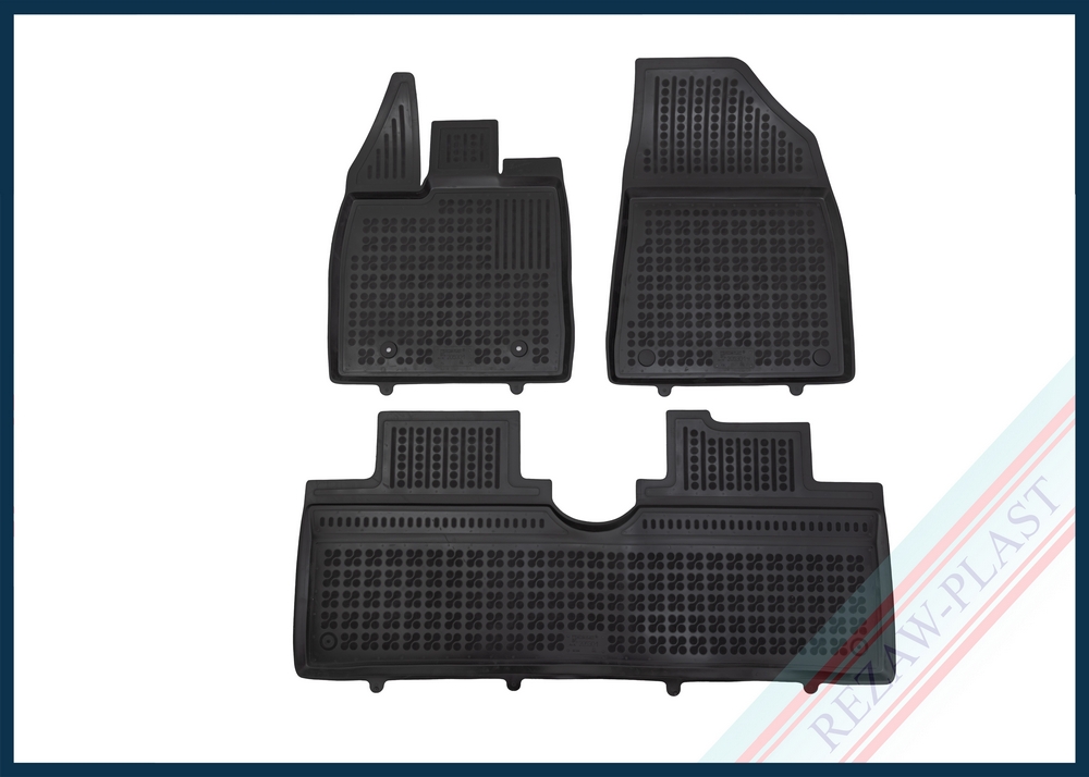 Komplet przeznaczony do pierwszego i drugiego rzędu siedzeń. Składa się z 3 sztuk i zawiera stopery do przednich dywaników. Można zakupić dodatkowo komplet stoperów do tylnych dywaników. Dywaniki dostępne również w innych kolorach: szary i beżowy.