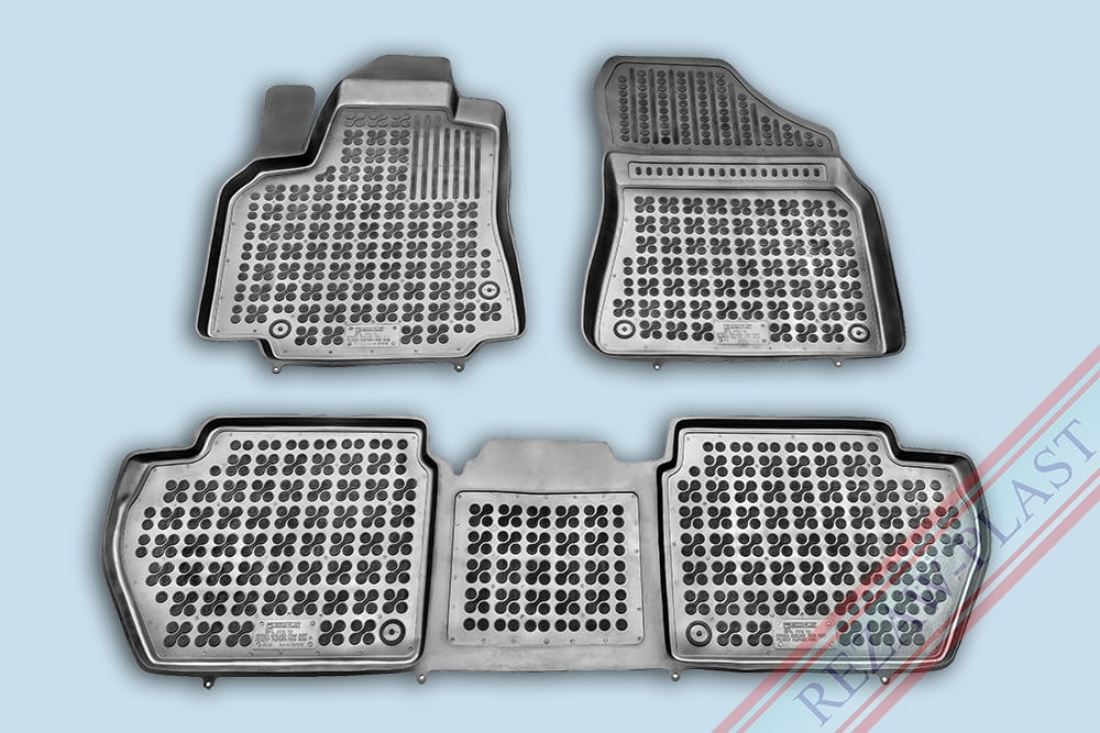 Komplet przeznaczony do pierwszego i drugiego rzędu siedzeń. Składa się z 3 sztuk i zawiera stopery do przednich dywaników. Można zakupić dodatkowo komplet stoperów do tylnych dywaników. Dywaniki dostępne również w innych kolorach: szary i beżowy.