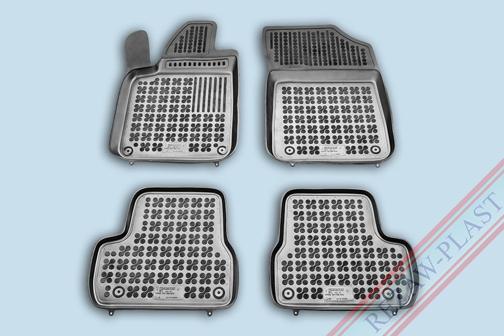 Komplet przeznaczony do pierwszego i drugiego rzędu siedzeń. Składa się z 4 sztuk i zawiera stopery do przednich dywaników. Można zakupić dodatkowo komplet stoperów do tylnych dywaników. Dywaniki dostępne również w innych kolorach: szary i beżowy.