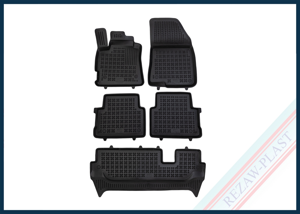 Komplet przeznaczony do pierwszego, drugiego i trzeciego rzędu siedzeń. Składa się z 4 sztuk i zawiera stopery do przednich dywaników. Można zakupić dodatkowo komplet stoperów do tylnych dywaników. Dywaniki dostępne również w innych kolorach: szary i beżowy.