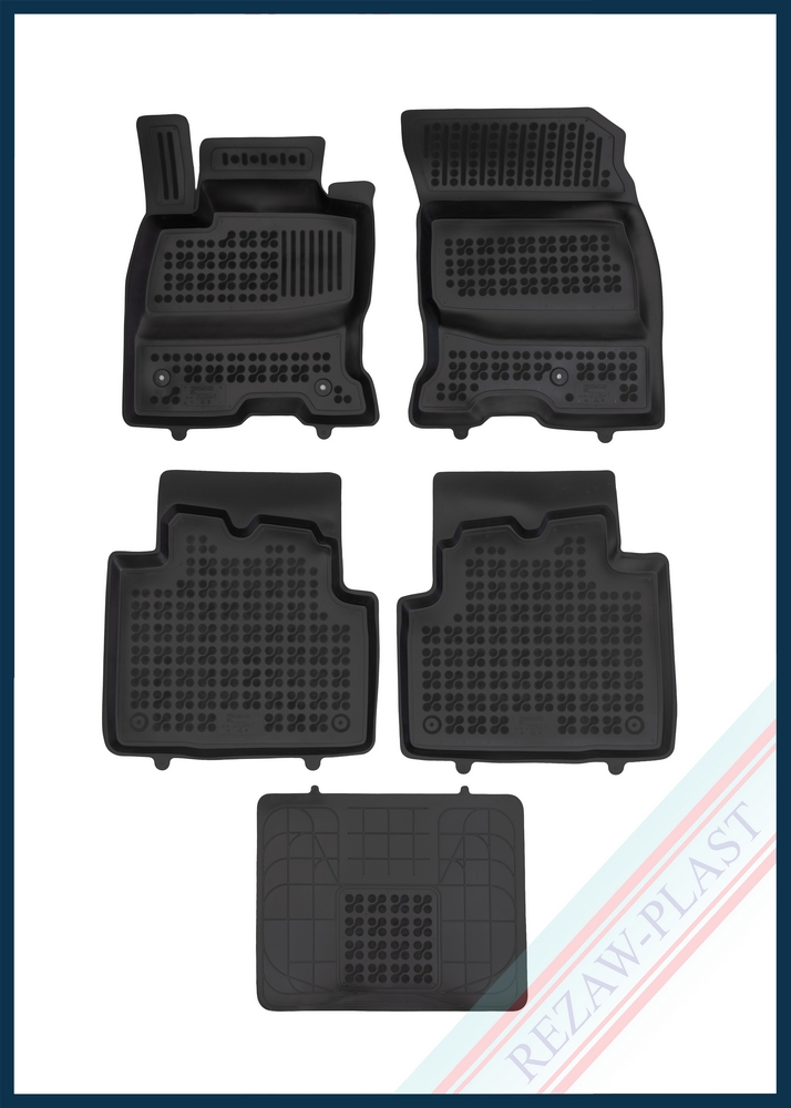 Komplet przeznaczony do pierwszego i drugiego rzędu siedzeń. Składa się z 4 sztuk + dodatkowy dywanik na tylny tunel, zawiera stopery do przednich dywaników. Można zakupić dodatkowo komplet stoperów do tylnych dywaników. Dywaniki dostępne również w innych kolorach: szary i beżowy.