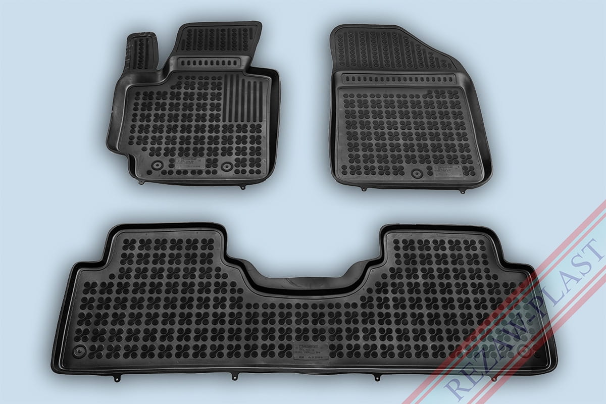 Komplet przeznaczony do pierwszego i drugiego rzędu siedzeń. Składa się z 3 sztuk i zawiera stopery do przednich dywaników. Można zakupić dodatkowo komplet stoperów do tylnych dywaników. Dywaniki dostępne również w innych kolorach: szary i beżowy.