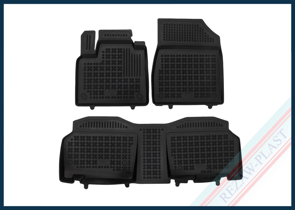 Komplet przeznaczony do pierwszego i drugiego rzędu siedzeń. Składa się z 3 sztuk i zawiera stopery do przednich dywaników. Można zakupić dodatkowo komplet stoperów do tylnych dywaników. Dywaniki dostępne również w innych kolorach: szary i beżowy.