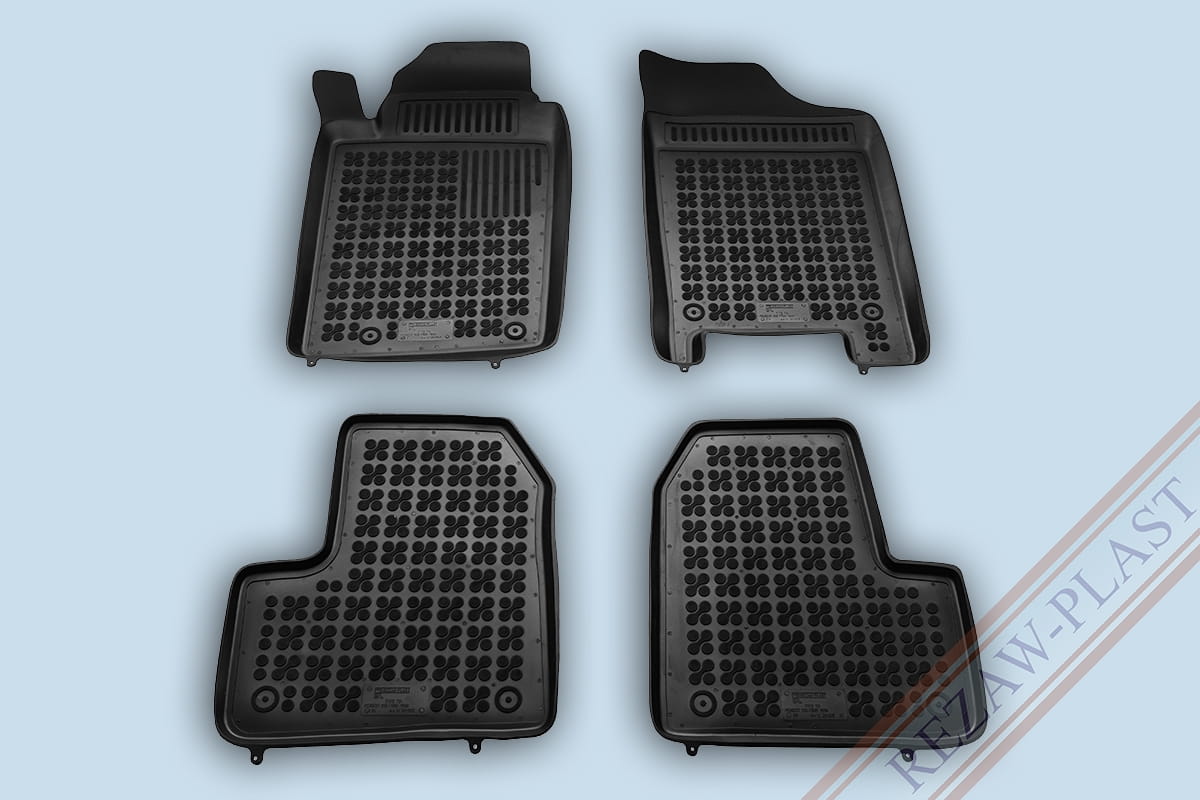 Komplet przeznaczony do pierwszego i drugiego rzędu siedzeń, Składa się z 4 sztuk i zawiera stopery do przednich dywaników, Można zakupić dodatkowo komplet stoperów do tylnych dywaników, Dywaniki dostępne również w innych kolorach: szary i beżowy.