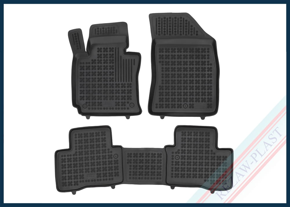 Komplet przeznaczony do pierwszego i drugiego rzędu siedzeń. Składa się z 3 sztuk i zawiera stopery do przednich dywaników. Można zakupić dodatkowo komplet stoperów do tylnych dywaników. Dywaniki dostępne również w innych kolorach: szary i beżowy.