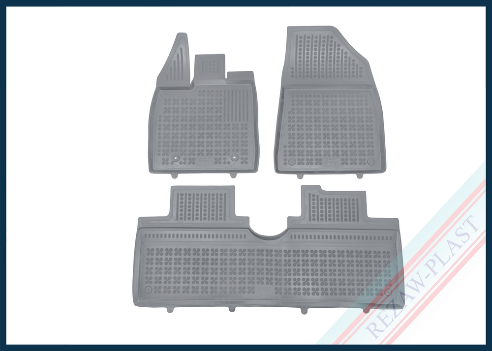 Komplet przeznaczony do pierwszego i drugiego rzędu siedzeń. Składa się z 3 sztuk i zawiera stopery do przednich dywaników. Można zakupić dodatkowo komplet stoperów do tylnych dywaników. Dywaniki dostępne również w innych kolorach: beżowy i czarny.