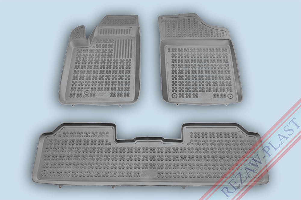 Komplet przeznaczony do pierwszego i drugiego rzędu siedzeń. Składa się z 3 sztuk i zawiera stopery do przednich dywaników. Można zakupić dodatkowo komplet stoperów do tylnych dywaników. Dywaniki dostępne również w innych kolorach: beżowy i czarny.