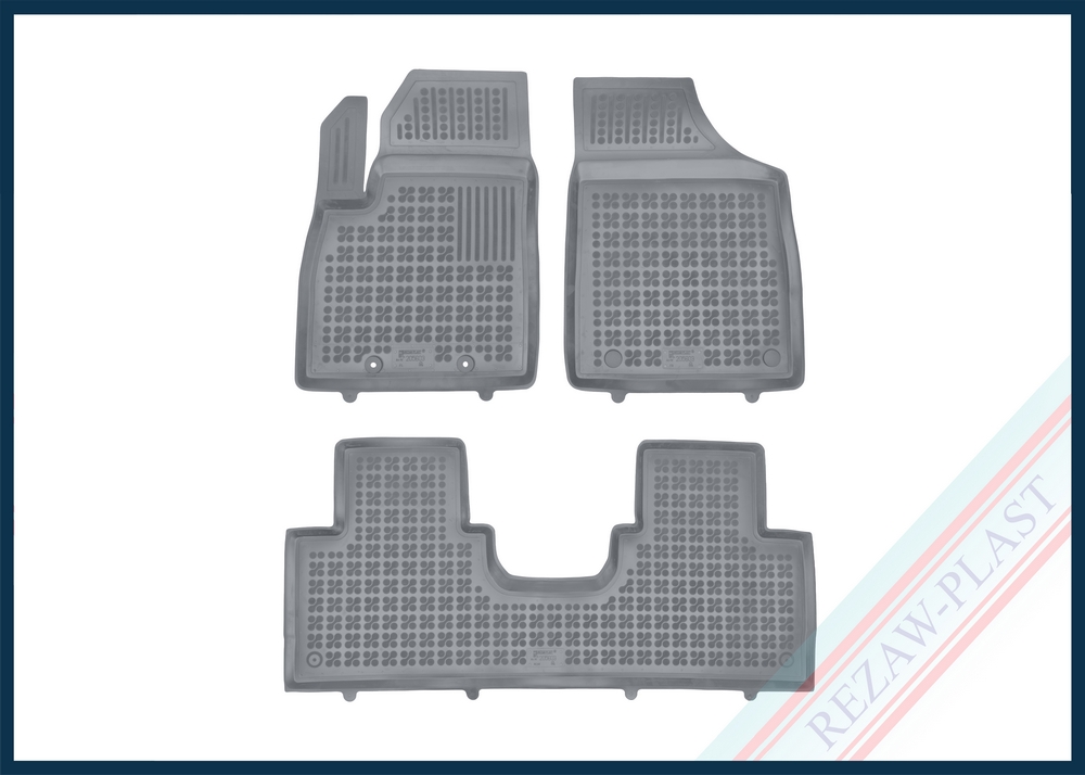 Komplet przeznaczony do pierwszego i drugiego rzędu siedzeń. Składa się z 3 sztuk i zawiera stopery do przednich dywaników. Można zakupić dodatkowo komplet stoperów do tylnych dywaników. Dywaniki dostępne również w innych kolorach: beżowy i czarny.