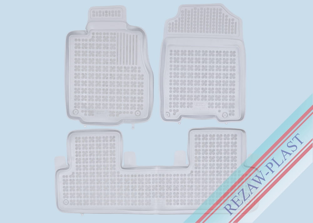 Komplet przeznaczony do pierwszego i drugiego rzędu siedzeń. Składa się z 3 sztuk i zawiera stopery do przednich dywaników. Można zakupić dodatkowo komplet stoperów do tylnych dywaników. Dywaniki dostępne również w innych kolorach: beżowy i czarny.