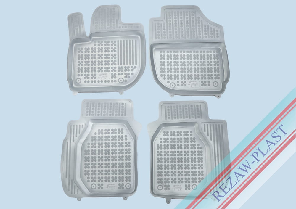 Komplet przeznaczony do pierwszego i drugiego rzędu siedzeń. Składa się z 4 sztuk i zawiera stopery do przednich dywaników. Można zakupić dodatkowo komplet stoperów do tylnych dywaników. Dywaniki dostępne również w innych kolorach: beżowy i czarny.