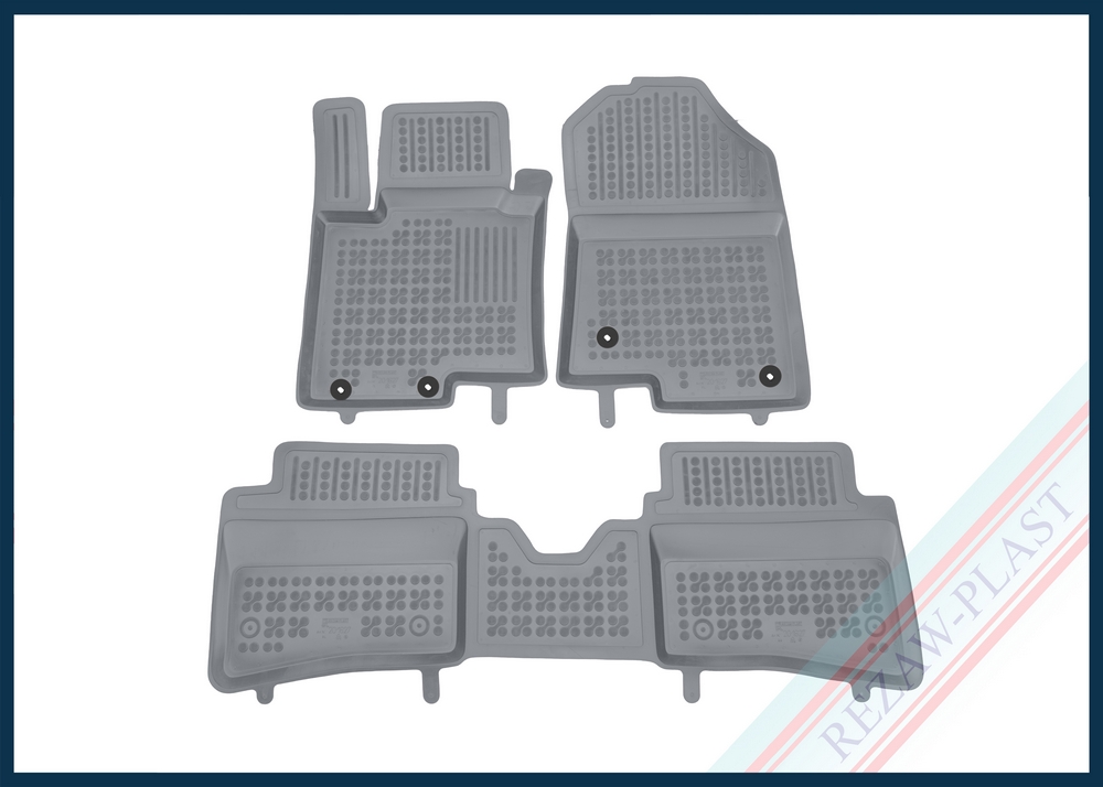 Komplet przeznaczony do pierwszego i drugiego rzędu siedzeń. Składa się z 3 sztuk i zawiera stopery do przednich dywaników. Można zakupić dodatkowo komplet stoperów do tylnych dywaników. Dywaniki dostępne również w innych kolorach: beżowy i czarny.