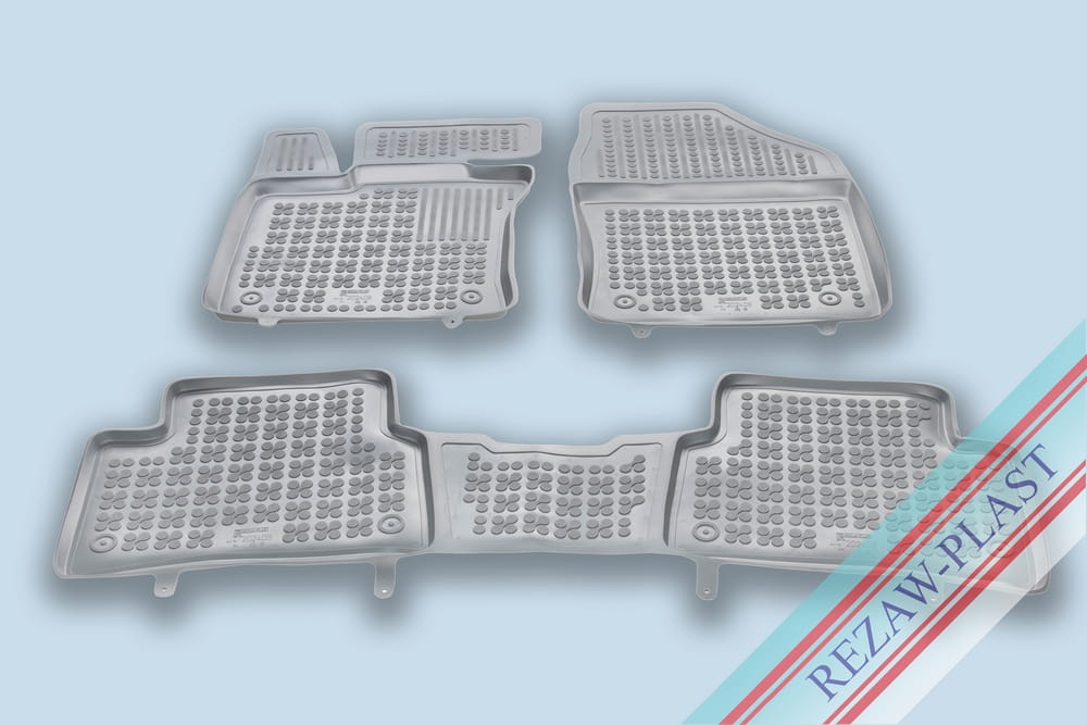 Komplet przeznaczony do pierwszego i drugiego rzędu siedzeń. Składa się z 3 sztuk i zawiera stopery do przednich dywaników. Można zakupić dodatkowo komplet stoperów do tylnych dywaników. Dywaniki dostępne również w innych kolorach: beżowy i czarny.
