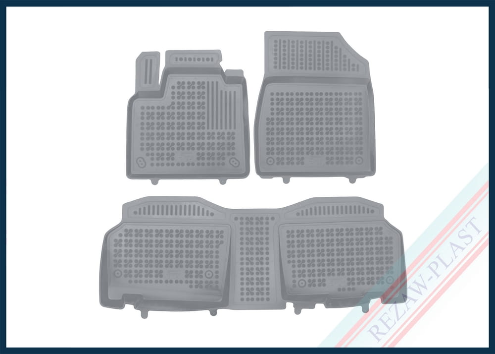 Komplet przeznaczony do pierwszego i drugiego rzędu siedzeń. Składa się z 3 sztuk i zawiera stopery do przednich dywaników. Można zakupić dodatkowo komplet stoperów do tylnych dywaników. Dywaniki dostępne również w innych kolorach: beżowy i czarny.