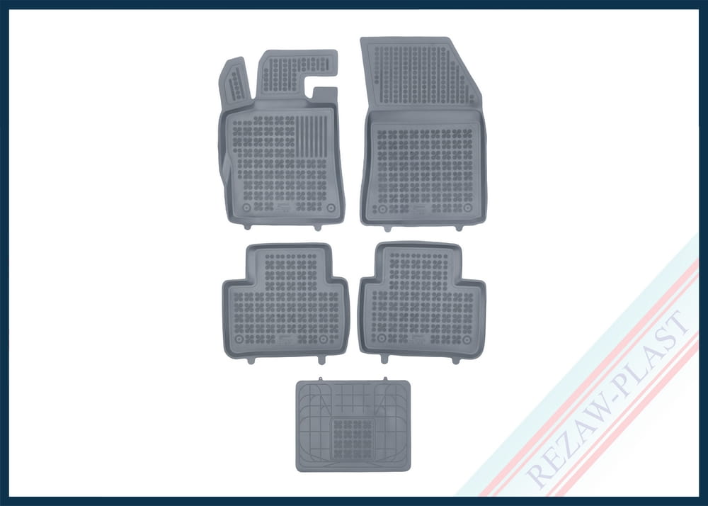 Komplet przeznaczony do pierwszego i drugiego rzędu siedzeń. Składa się z 4 sztuk i zawiera stopery do przednich dywaników. Można zakupić dodatkowo komplet stoperów do tylnych dywaników. Dywaniki dostępne również w innych kolorach: beżowy i czarny.